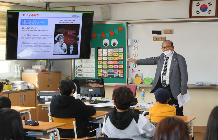 이날 남광초에서는 양씨를 비롯해 부혜영·문덕숙·김정순 씨 등 4·3 명예교사로 위촉된 유족 4명이 5학년 8개 반을 찾아가 평화인권교육을 진행했다.