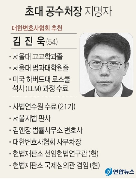 김 후보자는 국회 인사청문회를 거쳐 임명되며, 공수처는 내년 1월 출범할 예정이다.