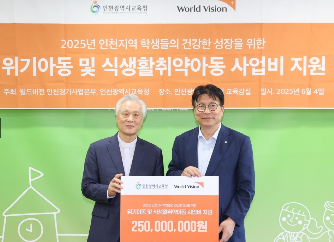 [코리아 이슈저널=홍춘표 기자] 인천광역시교육청은 4일 월드비전 인천경기사업본부와 ‘위기아동 및 식생활취약아동 사업비 전달식’을 갖고, 유아부터 고등학생까지 인천 지역 학생들을 위한 본격적인 지원에 나선다.