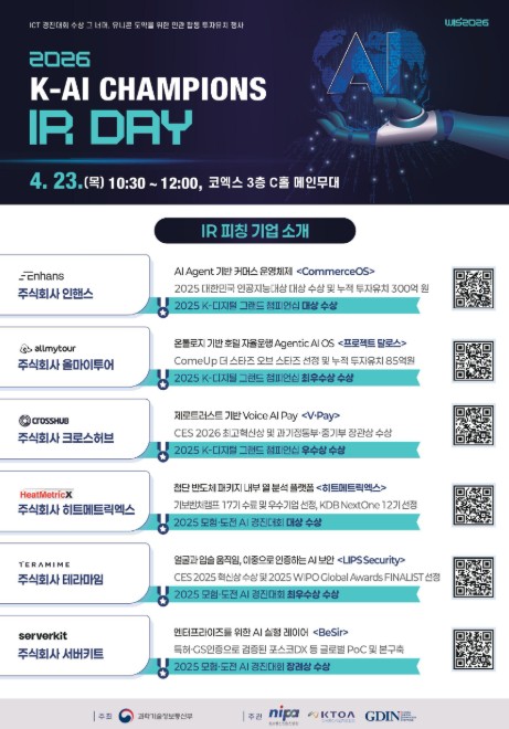 ‘2026 K-AI Champions IR Day’ 개최...월드IT쇼 연계로 시너지 극대화