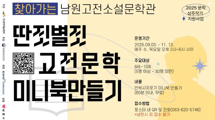 ‘찾아가는 남원고전소설문학관’은 문화체육관광부가 주최하고 한국문화예술위원회가 주관하며 국민체육진흥공단이 후원하는 ‘2025년 문학상주작가 지원사업’의 일환으로 추진된다.