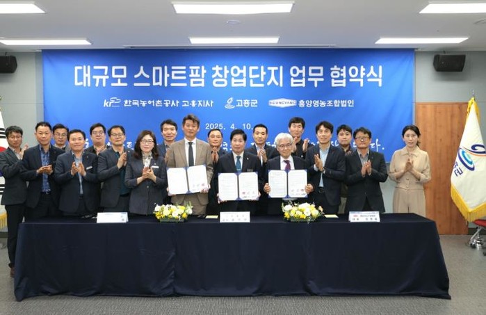 [코리아 이슈저널=김종오 기자] 고흥군은 지난 10일 ‘대규모 스마트팜 창업단지 조성사업’의 원활한 추진을 위해 한국농어촌공사-고흥군-농업법인 삼자 간 업무 협약을 체결했다고 밝혔다.