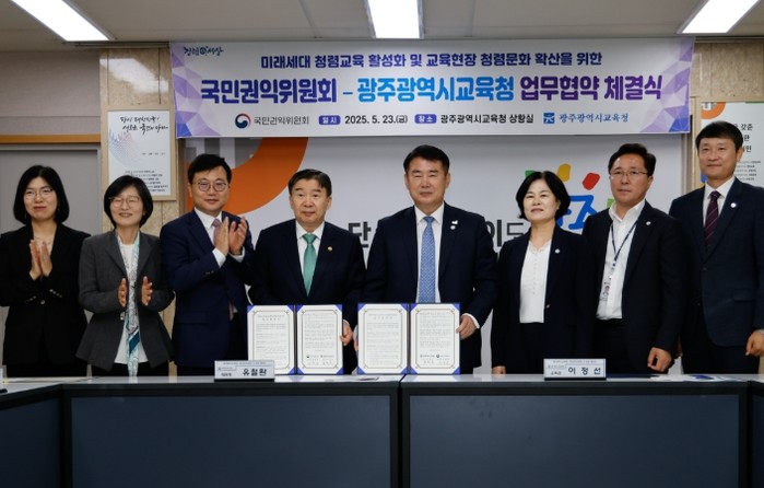 유철환 국민권익위원장은 “이번 협약을 계기로 광주지역 초·중·고등학교에서 청렴교육이 활성화되고, 지역사회 전반에 청렴문화가 넓고 단단하게 자리잡기를 바란다”고 밝혔다.