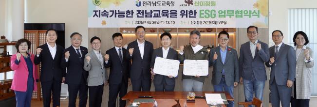 [코리아 이슈저널=김종오 기자] 전라남도교육청과 산이정원은 26일 해남 산이정원 가든뮤지엄 VIP실에서 ‘지속가능한 전남교육 실현을 위한 ESG 업무협약’을 체결했다.