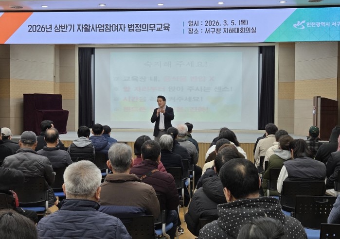 [코리아 이슈저널=홍춘표 기자] 인천 서구는 지난 5일 자활사업 참여자 250여 명을 대상으로 ‘2026년 상반기 법정의무교육’을 실시했다고 밝혔다.