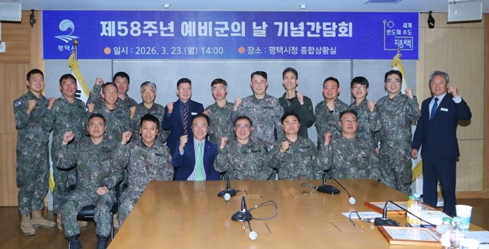 [코리아 이슈저널=홍춘표 기자] 평택시는 지난 23일 오후 2시, 평택시청 종합상황실에서 지역 방위의 핵심 주역인 예비군 지휘관들을 초청하여 ‘제58주년 예비군의 날 기념 간담회’를 개최했다.