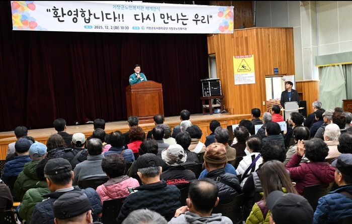 2일 군은 개관식을 열고, 지역 주민들과 함께 기장군노인복지관의 새단장을 축하하는 자리를 가졌다. 이날 행사는 정종복 기장군수를 비롯해 기장군의회 박홍복 의장 및 군의원, 복지관 이용자, 주민 등 500여 명이 참석한 가운데 ▲경과보고 ▲기념사 ▲축사 ▲중식(특식) 제공 순으로 진행됐다.