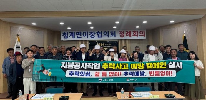 [코리아 이슈저널=김종오 기자] 전남 무안군은 지난 16일 청계농협에서 열린 청계면 이장협의회 회의에서 중대재해 예방을 위한 지붕 추락사고 예방 캠페인을 전개했다.