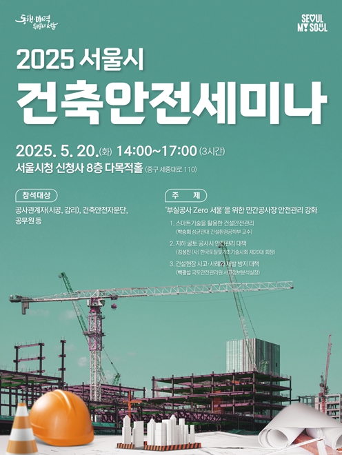 [코리아 이슈저널=최준석 기자] 서울시가 민간건축 공사장 안전관리를 위해 시공자, 감리자 등 공사관계자, 서울시 건축안전자문단, 공무원 등을 대상으로 '2025 서울시 건축안전세미나'를 개최한다고 밝혔다.