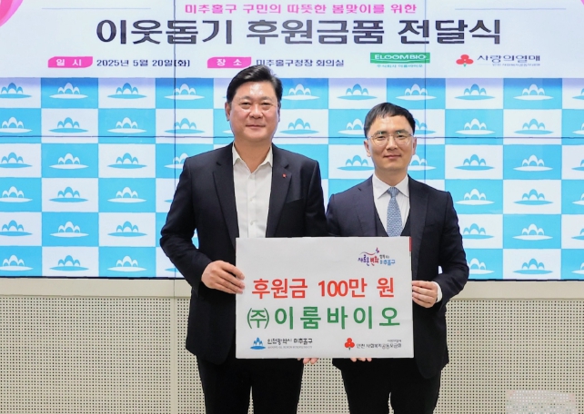 [코리아 이슈저널=홍춘표 기자] 인천 미추홀구는 20일 구청장실에서 방역 전문기업 ㈜이룸바이오(대표이사 조진형)로부터 후원금 100만 원을 전달받았다.