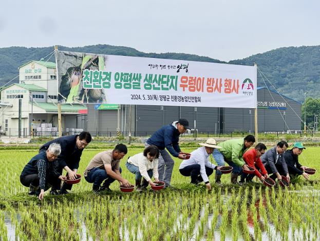 ▲ 친환경 양평쌀 생산 우렁이 방사 행사