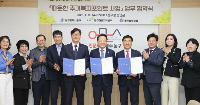 이들 기관은 이번 협약을 통해 동구는 문화강좌를 지원하고, LH 광주전남지역본부와 광주동부신협은 주거비 절감을 위한 주거복지포인트 재원을 마련하기로 했다.