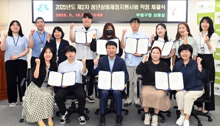 [코리아 이슈저널=홍춘표 기자] 부평구는 지난 10일 구청에서 ‘2025년 제2차 청년창업 재정지원 사업’에 선정된 예비창업자 6명과 지원 약정을 체결했다.