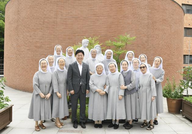 | ▲ 조용익 부천시장이 성가소비녀회를 만나 기념사진을 촬영하고 있다. |