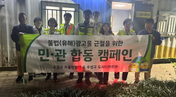 수성구청 관계자는 “이번 캠페인은 민관이 함께 깨끗한 수성구를 만들기 위해 협력한 의미 있는 자리였다”며 “앞으로도 지속적인 단속과 계도 활동을 통해 불법광고물 없는 안전하고 쾌적한 지역사회를 만드는 데 최선을 다하겠다”고 밝혔다.