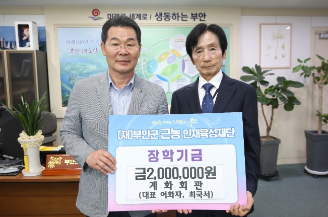 권익현 부안군 근농인재육성재단 이사장은 “매년 잊지 않고 장학금을 기탁 해주시는 계화회관 두 대표님의 귀한 뜻을 헤아려, 장학금이 지역 인재 육성에 잘 쓰일 수 있도록 노력하겠다”며 감사의 뜻을 전했다.