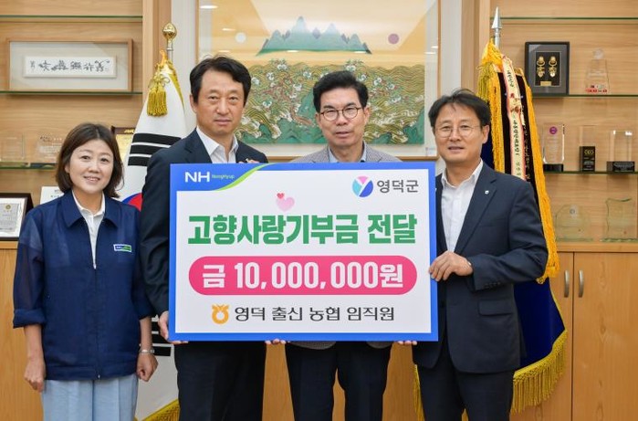 [코리아 이슈저널=김태훈 기자] 영덕군 출신의 농협중앙회 임직원이 지난 3월 말 경북산불로 큰 피해가 발생한 고향을 돕고자 지난 13일 영덕군을 찾아 성금 1,000만 원을 전달했다.