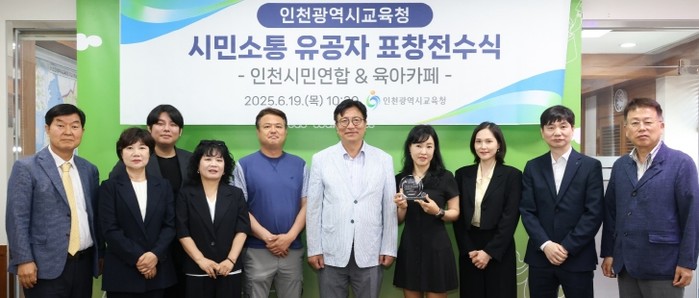 이번 표창은 인천시민연합과 맘카페가 교육청과의 업무협약을 바탕으로 전용 게시판 운영, 교육 정보 공유, 정책 제안 등 시민 참여 기반의 협력 활동을 지속해 온 공로를 인정해 마련됐다.