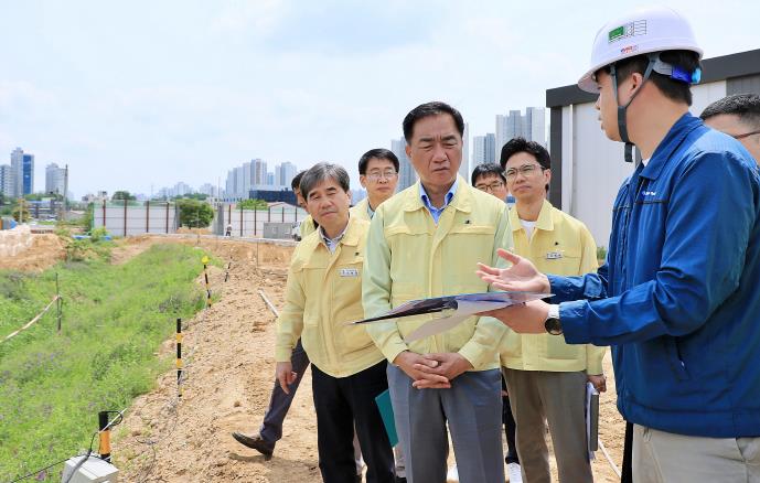[코리아 이슈저널=홍춘표 기자] 정장선 평택시장은 21일 여름철 자연재난 대비 중부권버스차고지 공사현장에 방문하여 침수방지 추진대책 점검에 나섰다.