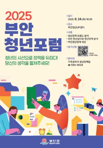 [코리아 이슈저널=김종오 기자] 부안군은 지역 청년들의 생생한 목소리를 듣고 청년의 시선에서 지역의 현재와 미래를 함께 고민하기 위한 2025 부안 청년포럼을 오는 24일 부안청년UP센터에서 개최한다.