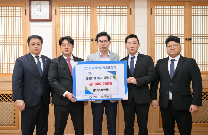 [코리아 이슈저널=김태훈 기자] 영덕청년회의소는 지난 31일 김광열 영덕군수를 만나 산불 피해 복구에 써달라며 성금 100만 원을 기탁했다.