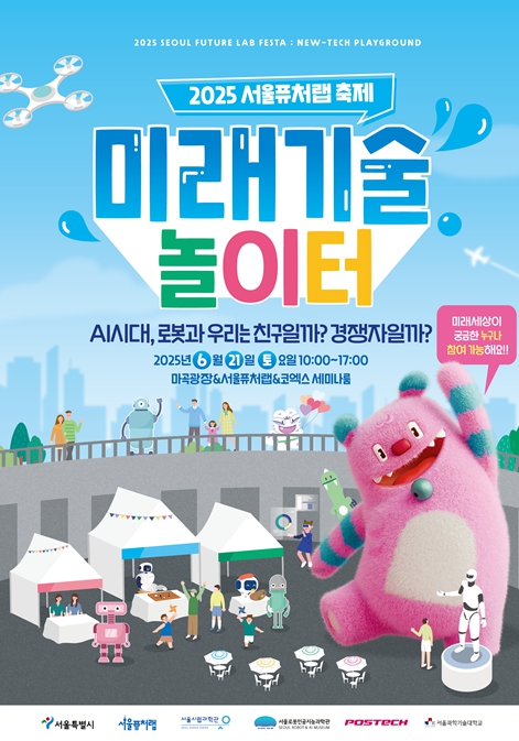 주용태 서울시 경제실장은 “서울퓨처랩 축제는 AI와 로봇 등 첨단기술을 직접 체험하고, 미래사회에서 인간과 기술이 어떻게 공존할 수 있을지 함께 고민하는 소중한 기회가 될 것”이라며, “포스텍, 서울시립과학관과 협업한 다양한 프로그램을 통해, 참가자들이 창의적인 생각을 키우고 새로운 경험을 쌓아 미래 인재로 성장하길 기대한다.”라고 밝혔다.