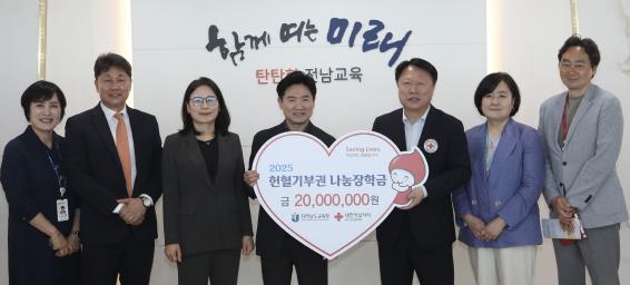 [코리아 이슈저널=김종오 기자] 전라남도교육청과 대한적십자사 광주전남혈액원이 지난 19일‘2025년 헌혈기부권 나눔장학금 전달식’을 열고, 도내 고등학생 20명에게 총 2,000만 원의 장학금을 전달했다.