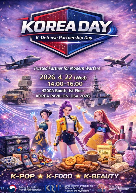 아울러 전시 기간 중 참관객의 발길을 사로잡고 통합한국관 운영을 활성화하기 위해 참여형 프로그램인 ‘코리아 데이(KOREA DAY)' 행사를 개최한다. 전 세계적으로 높아진 한국 문화의 인기를 K-방산 홍보에 전략적으로 접목해 홍보 효과를 극대화할 계획이다.