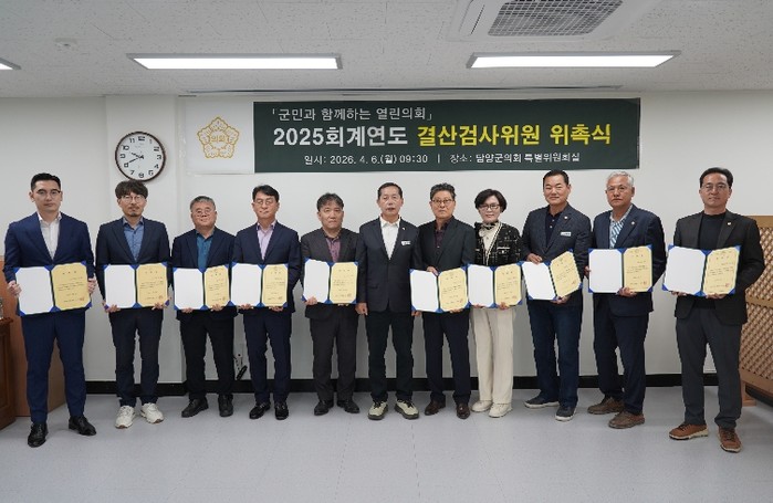 [코리아 이슈저널=홍춘표 기자] 담양군의회는 4월 6일 의회 특별위원회실에서 2025회계연도 결산검사위원 위촉식을 개최하고 본격적인 결산검사에 돌입했다.