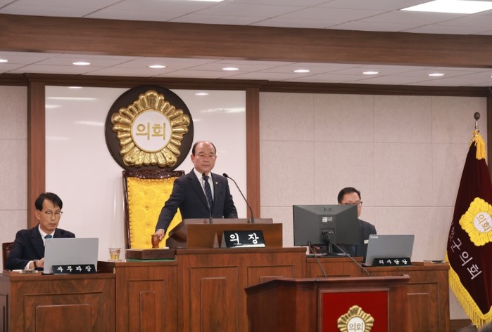 정봉훈 의장은 이날 개회식에서 “내년 살림살이인 2026년 세입세출예산안과 기금운용계획안 등 각종 안건 심의에 최선을 다해줄 것을 당부 하며, 겨울철 재난 예방과 취약계층 지원에도 세심한 관심을 부탁드린다” 고 전했다.