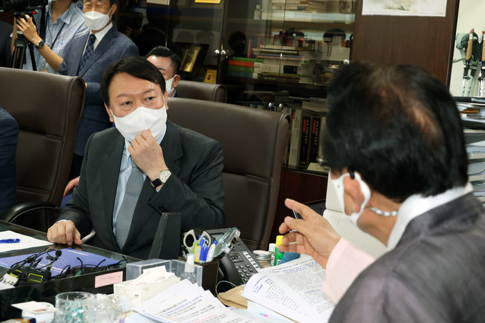 한편, 윤 전 총장은 이날 김호일 대한노인회장을 만나 노년정책 강화를 약속했다.