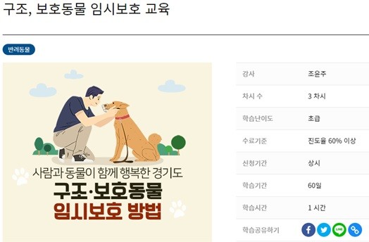 | ▲ 지식(GSEEK) 구조·보호동물 임시보호 교육 페이지[출처=경기도청] |