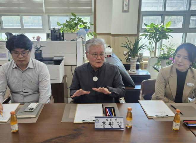 [코리아 이슈저널=홍춘표 기자] 경기도의회 문화체육관광위원회 홍원길 의원(국민의힘, 김포1)이 지난 23일 향산초중학교에서 열린 간담회에서 외벽 방수공사 진행 상황을 점검하고 향후 보완 과제를 논의했다.