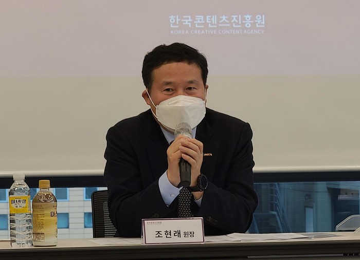 | ▲ 한국콘텐츠진흥원의 조현래 원장은 15일 서울 종로구 한 세미나실에서 기자간담회를 열고 내년도 사업계획 등을 밝혔다. 2021.12.15 [연합뉴스 제공] |