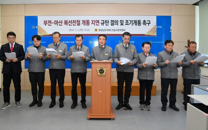 [코리아 이슈저널=김태훈 기자] 경상남도의회 건설소방위원회는 5일 기자회견을 열고, 6년째 표류 중인 ‘부전~마산 복선전철’ 사업의 조속한 개통을 촉구하며 정부의 무책임한 행정을 강력히 규탄했다.