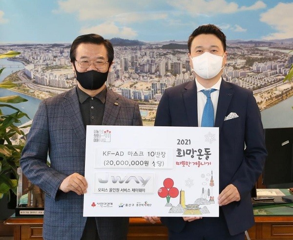 [열린의정뉴스 = 이창희 기자] 판촉물 종합 쇼핑몰 제이웨이기프트를 운영하는 제이웨이(대표 김현정)가 22일 용산구(구청장 성장현)에 KF-AD 마스크 10만장(2000만 원 상당)을 전달했다.