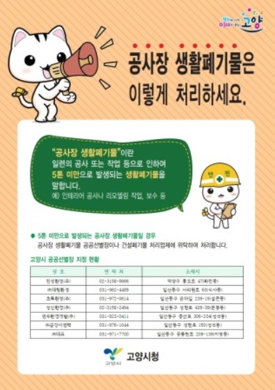 고양시 자원순환과 폐기물관리팀장은 "시민들의 작은 노력과 실천들이 모이면 쓰레기 처리 비용이 절감되고 환경 개선에도 큰 도움이 될 것"이라며 "앞으로 관내에서 발생하는 공사장 생활폐기물을 효율적으로 처리하기 위해 노력할 것"이라고 밝혔다.