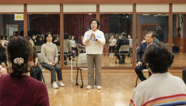 | ▲ 신계용 과천시장이 2025년 3월 열린 '찾아가는 시장실' 행사를 통해 주민들과 소통하고 있다 |