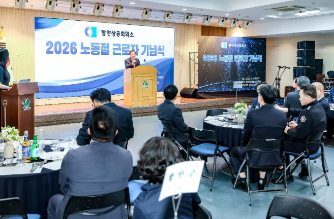 [코리아 이슈저널=김태훈 기자] 함안군은 지난 28일 함안상공회의소가 함안문화예술회관 연회장에서 ‘2026년 노동절 기념식’을 개최했다고 밝혔다.