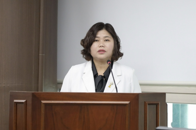 | ▲ 안산시의회 박은정 의원이 지난 24일 제3상임위실에서 열린 제302회 임시회 도시환경위원회에서 ‘안산시 지역건설산업 활성화 촉진 조례 일부개정조례안’에 대해 설명하고 있다. |