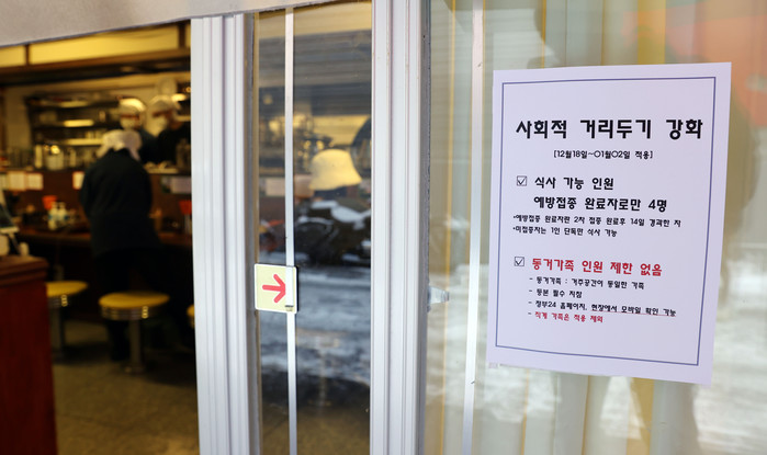 ▲ 사회적 거리두기 강화 안내문 [연합뉴스 자료사진]