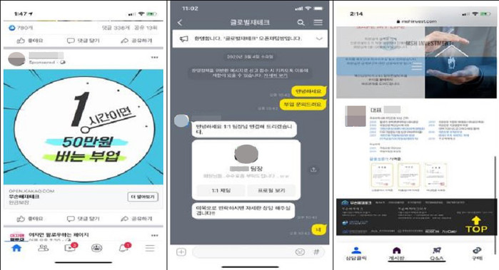 투자사기는 인스타그램과 네이버 밴드에서 유명 투자전문가 행세를 하며 가짜 투자사이트에 가입하도록 유도하는 식으로 진행됐다.