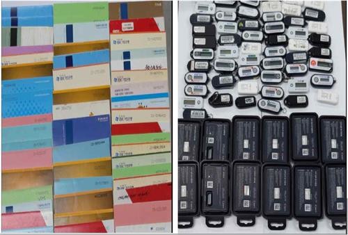 | ▲ 보이스피싱 조직 등에 유통된 대포통장 및 OTP [서울동부지검 제공. 재판매 및 DB 금지] |