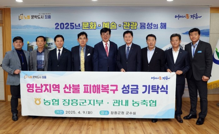 [코리아 이슈저널=김종오 기자] NH농협 장흥군지부, 지역 농축협이 영남지역(청송·의성) 산불 피해로 어려움을 겪는 이재민들을 위해 성금 1,200만원을 장흥군에 기탁했다.