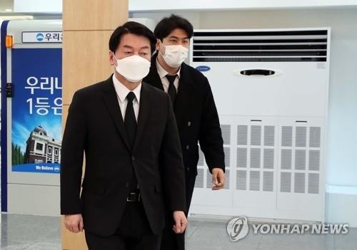 검은색 양복 차림의 안 후보는 지친 표정으로 말없이 장례식장 내 빈소로 향했다.