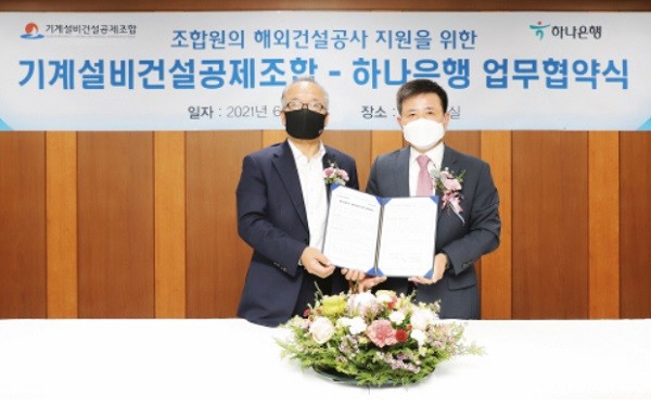 이번 협약을 통해 하나은행과 기계설비건설공제조합은 조합원의 해외 진출에 필요한 해외 건설 공사 관련 보증을 적극 지원하기로 협의했다.