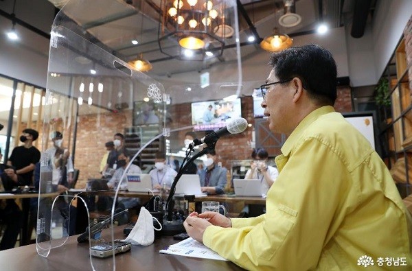 ▲ 12일 도청 프레스센터에서 기자간담회를 하고 있는 양승조 충남도지사[출처=충남도청]