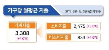2분기 가구당 월평균 소비지출은 247만5천원으로 1년 전보다 3.8% 늘었다. 2012년 1분기(4.5%) 이후 최고 증가율이다.