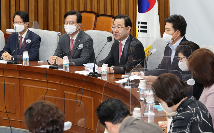 주호영 원내대표는 이날 원내대책회의에서 "'일언부중 천어무용'(一言不中 千語無用·한 마디 말이 맞지 않으면 천 마디가 소용이 없다는 뜻)이라 했다"면서 "국민이 가장 궁금해하는 것이 이 대표를 둘러싼 숱한 의혹들에 대한 이 대표의 자세한 입장 표명"이라고 지적했다.
