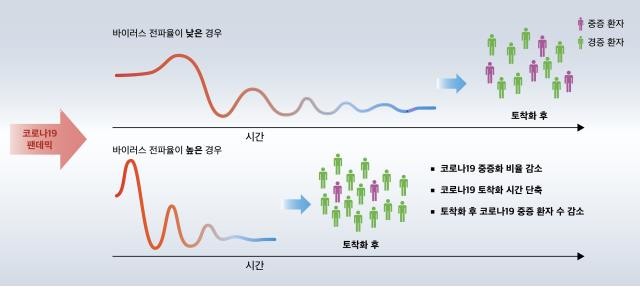 그러나 궁극적으로 코로나19 위중증화 비율이 낮아지면서 위중증 환자 수는 줄어들고, 경증 호흡기 질환으로 토착화하는 과정이 오히려 빨라질 수 있다는 연구 결과를 얻었다.